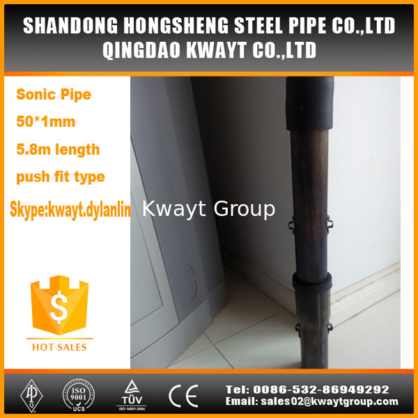 KWAYT Sonic tubes are Push-fit type CSL tubes are made by thin black annealed steel tube, with an enlarge end in a bell mouth shape .Specially designed rubber gasket for the bell mouth ensure quick installation and perfect sealing to keep the tube integrity and avoid the entry of other material.